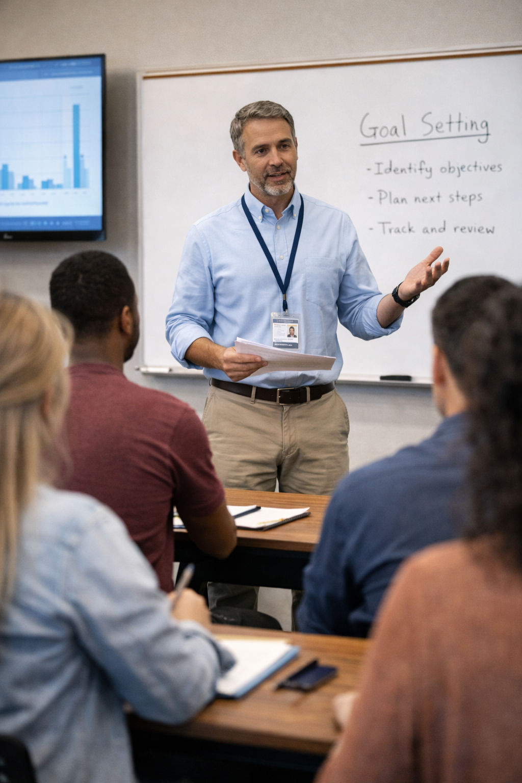 Dirigido a personas que deban contar con conocimientos, habilidades, destrezas y actitudes para quienes realizan impartición de cursos de formación del capital humano de manera presencial y grupal contempla las funciones sustantivas de preparar, conducir y evaluar cursos de capacitación. Preparar la sesión mediante la planeación de la sesión y la comprobación de la existencia y el funcionamiento de los recursos requeridos para la sesión. Conducir la sesión realizando el encuadre, desarrollo y cierre, empleando técnicas instruccionales y grupales que faciliten el proceso de aprendizaje. Evaluar el aprendizaje antes, durante y al final, considerando la satisfacción de los participantes.